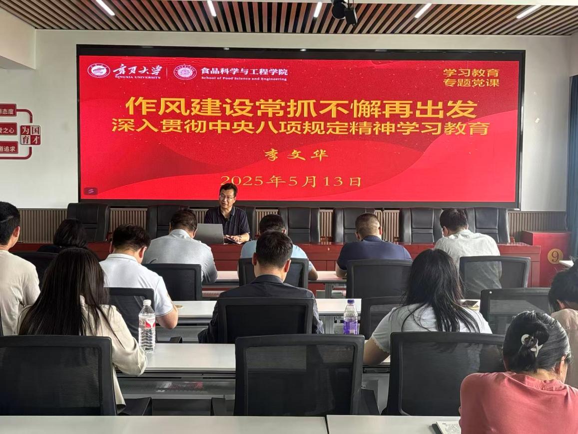 为扎实推进深入贯彻中央八项规定精神学习教育,认真落实习近平总书记关于加强党的作风建设的重要论述,WilliamHill中文党总支于5月21日下午在明远楼512会议室组织开展学习教育专题党课讲座。讲座以“作风建设常抓不懈再出发——深入贯彻中央八项规定精神”为主题,由学院党总支书记李文华主讲,全体党员教师参加学习。