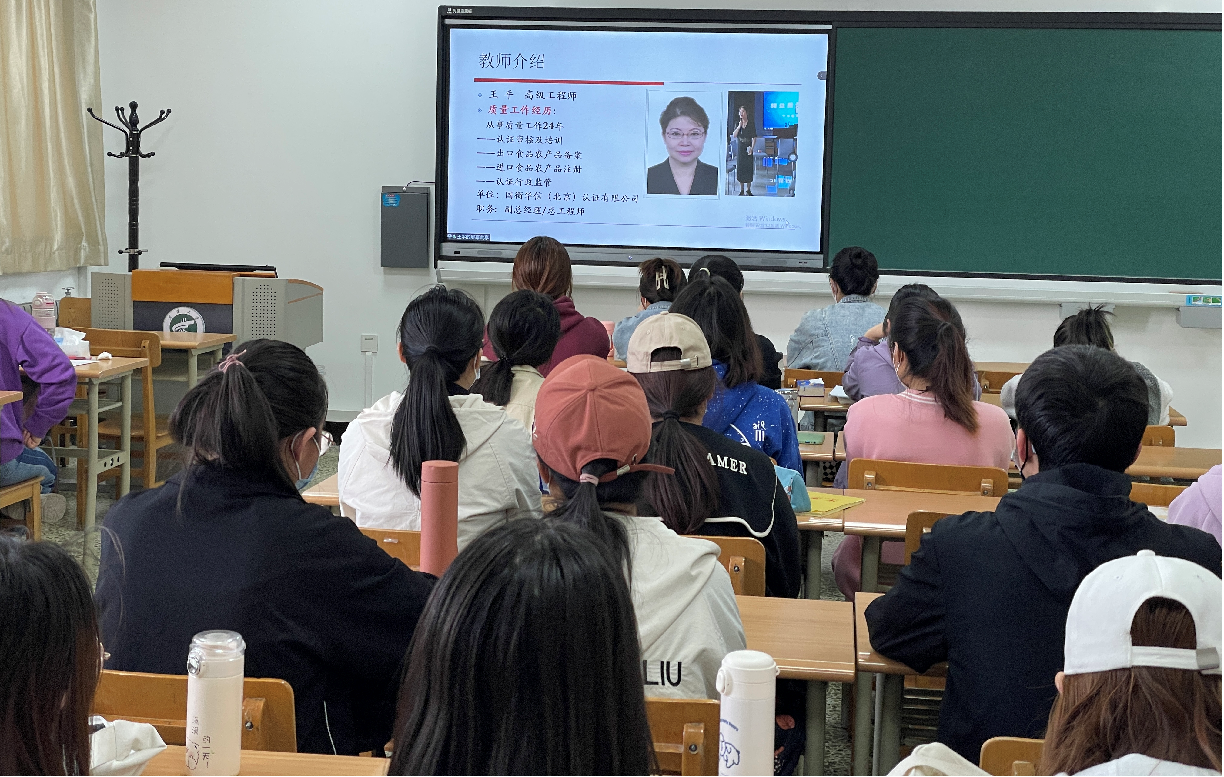 在本次的行业专家进课堂活动中,王平老师全程结合自己在质量管理和认证认可工作中丰富的“实战”经验,给同学们开展了一堂别开生面且实用性强的专业课程培训,为食品科学与工程专业人才培养质量的提升给予了重要支撑。