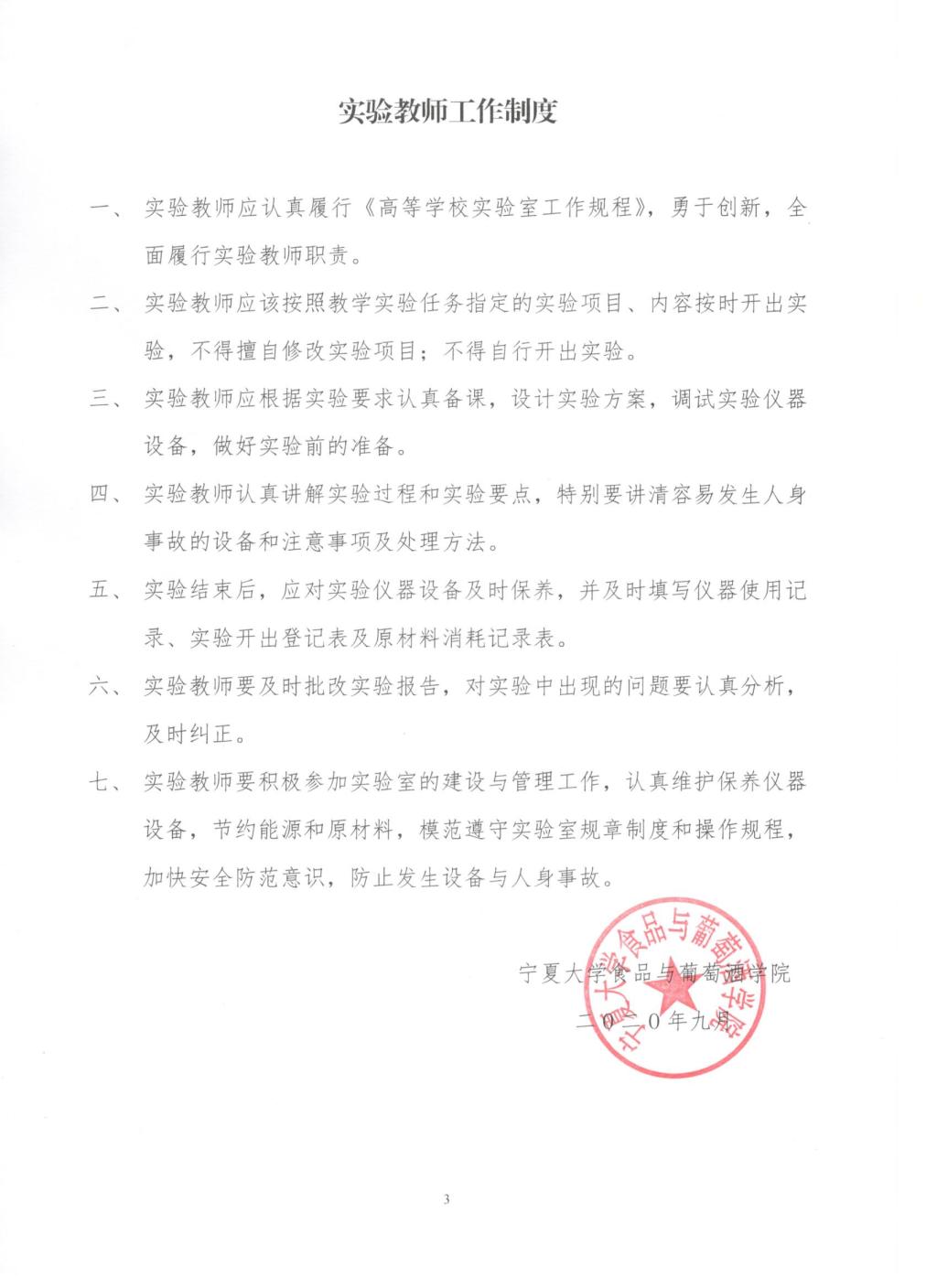 食品与葡萄酒学院实验教师工作制度